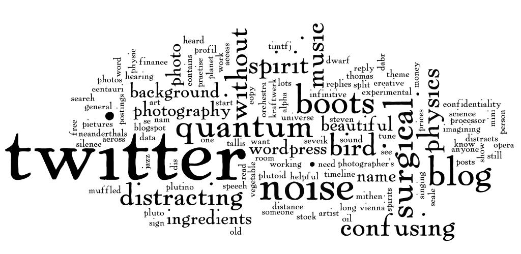 Actually that particular wordle isn’t 100% accurate, because in my eagerness I forgot that some of the terms (e.g. the impressive pluto planet dwarf plutoid plutino) had been used twice and should have been pasted in twice. Or maybe it is accurate, if it was the same person returning? Who knows? (Answer: the person who used it. OK, point taken.)