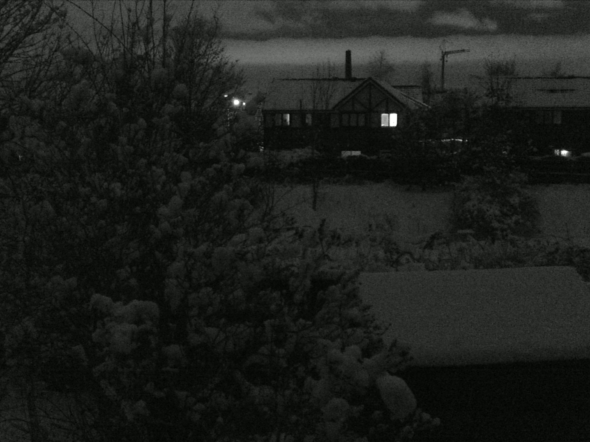 Well, judge for yourself. The original photos I took did rather support my theory about the street lights, by having a very yellow underside to some of the clouds. The effect was a bit horrible. I converted them to black and white. Here’s my favourite of the resulting pictures: